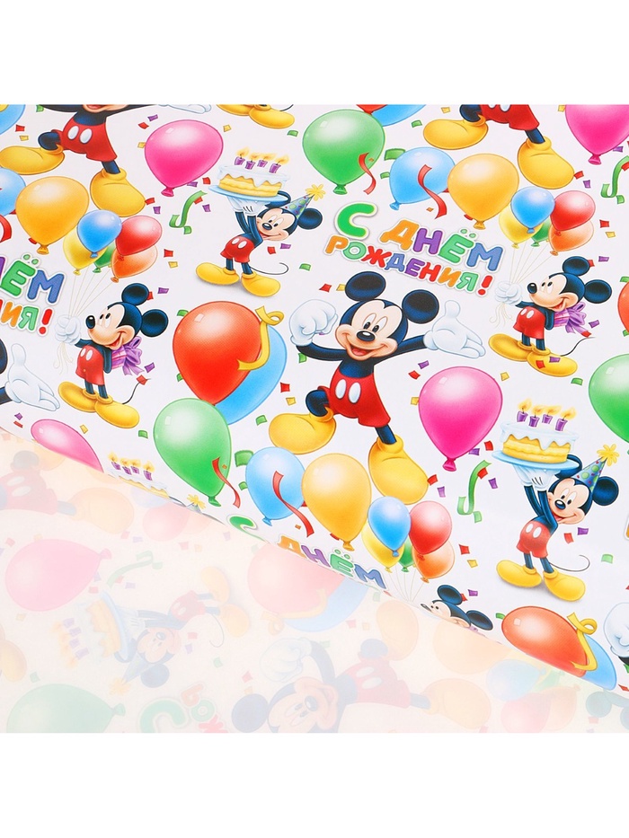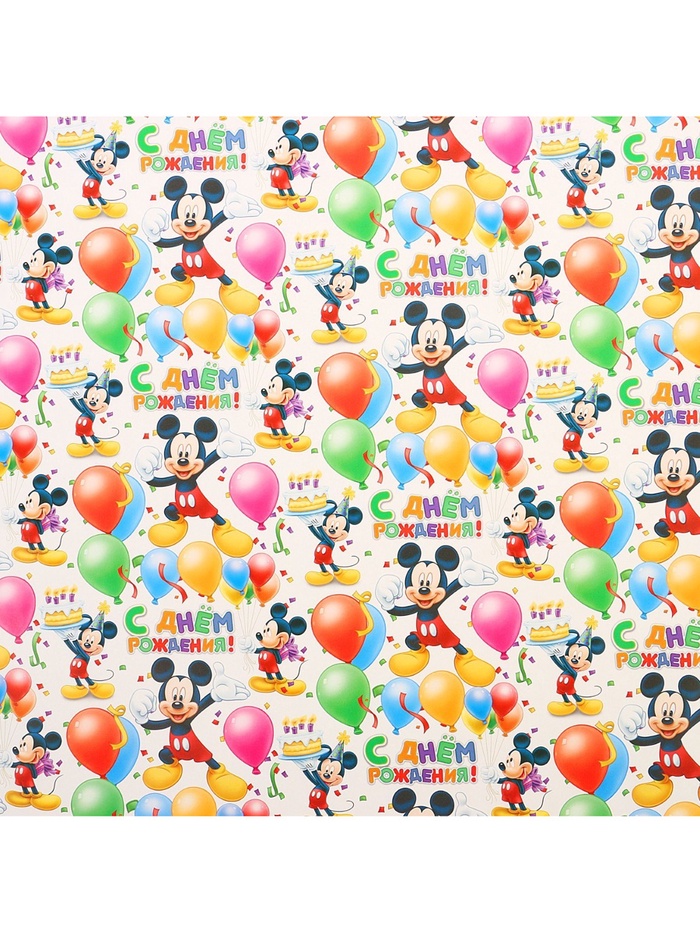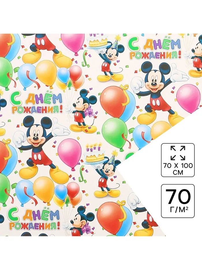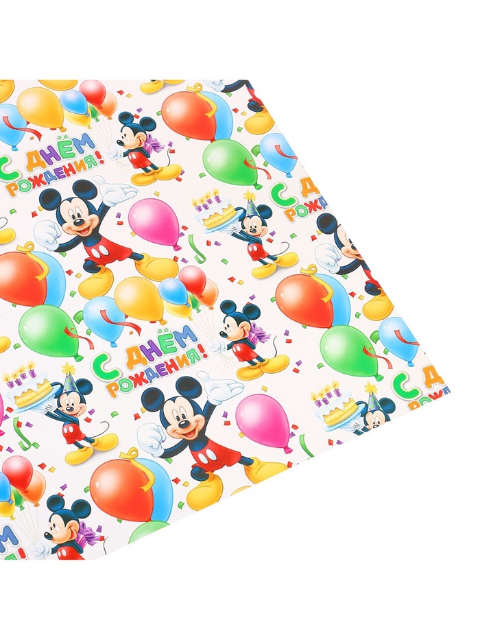 Бумага упаковочная глянцевая «С днём рождения», Микки Маус, 70x100 см — Характеристики