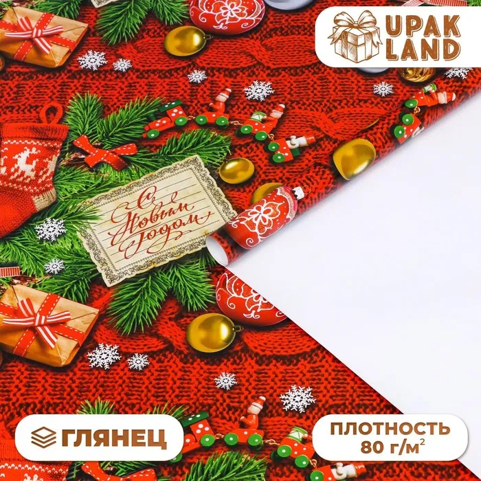 Бумага упаковочная глянцевая «С Новым Годом!», 70×100 см,1 лист — Характеристики