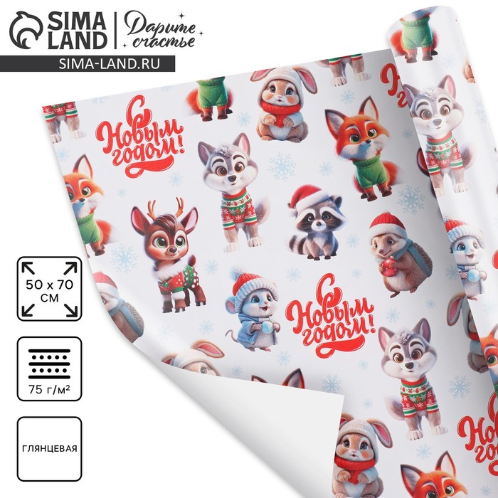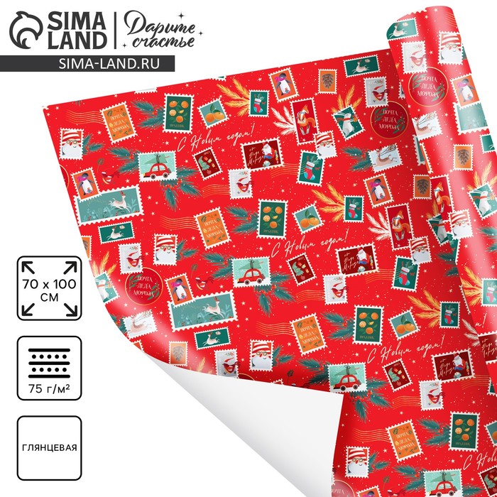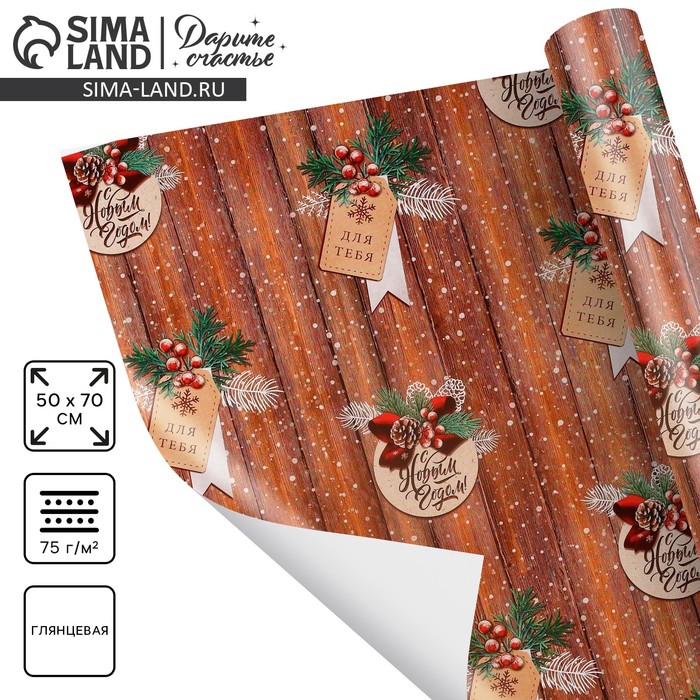 Бумага упаковочная глянцевая «С Новым годом», двусторонняя, 70×100 см — Характеристики