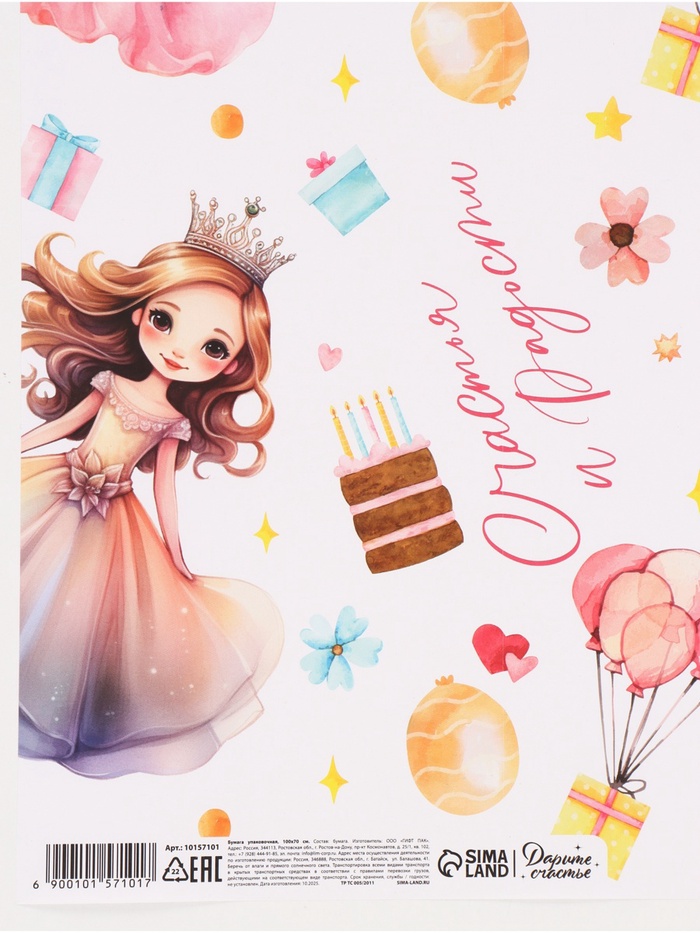 Бумага упаковочная, глянцевая «Счастья и радости» 70×100 см — Характеристики