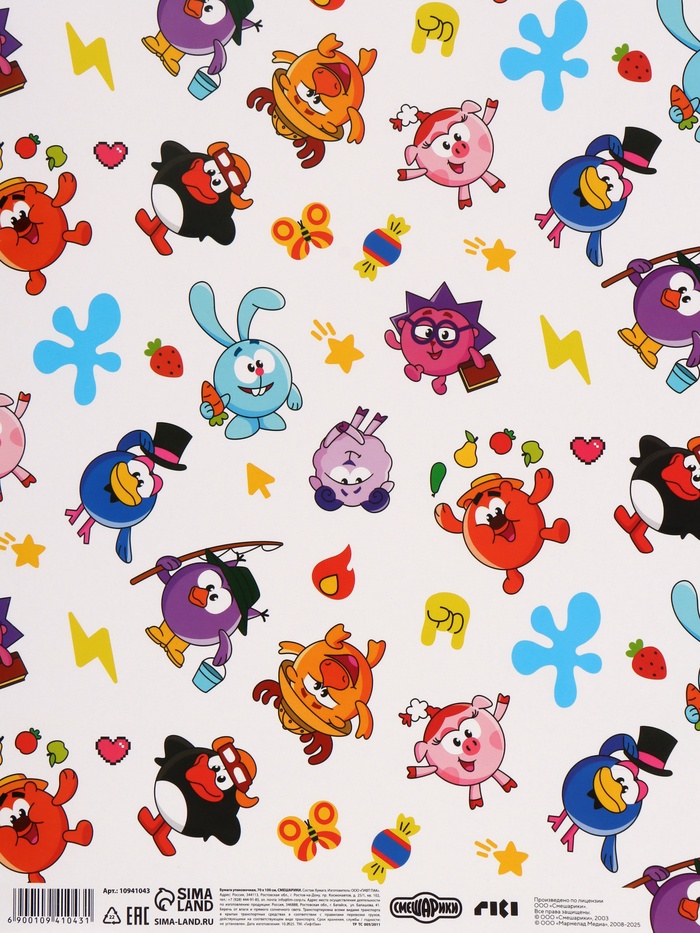 Бумага упаковочная глянцевая «Смешарики», 70×100 см — Характеристики