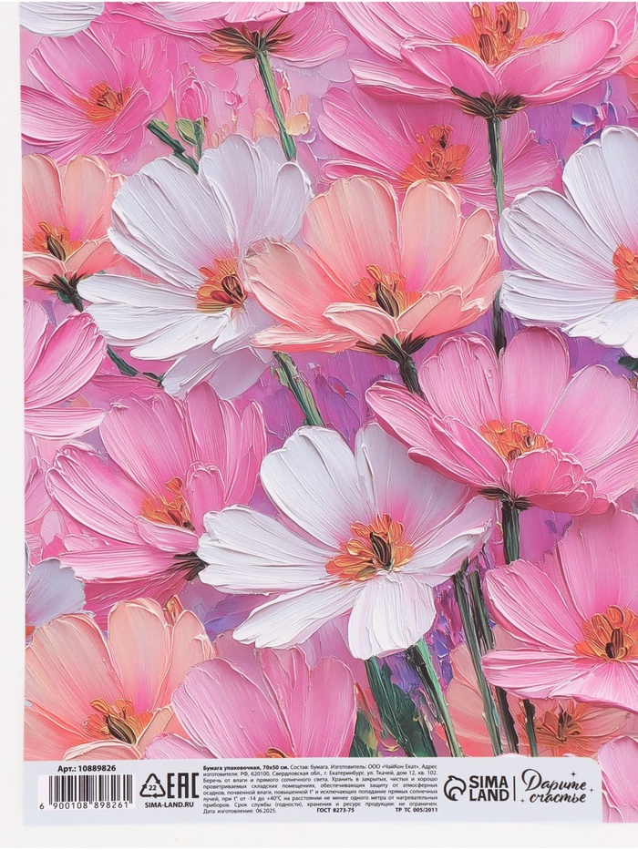Бумага упаковочная глянцевая «Цветы», 50 × 70 см — Характеристики