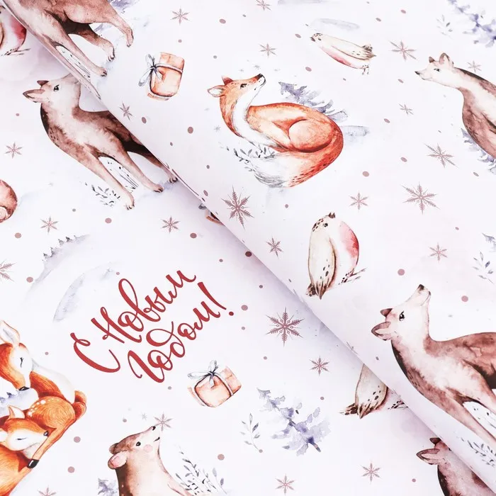 Бумага упаковочная глянцевая «Зверята », 70×100 см,1 лист