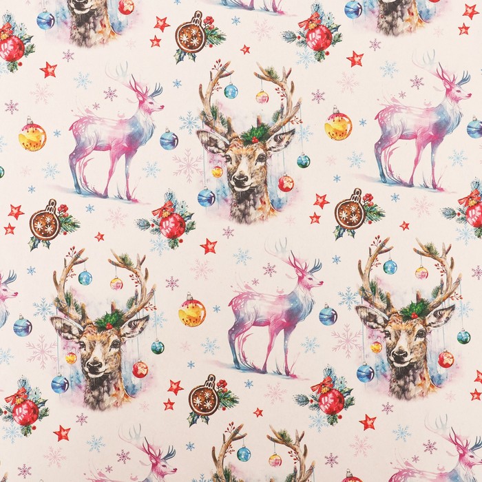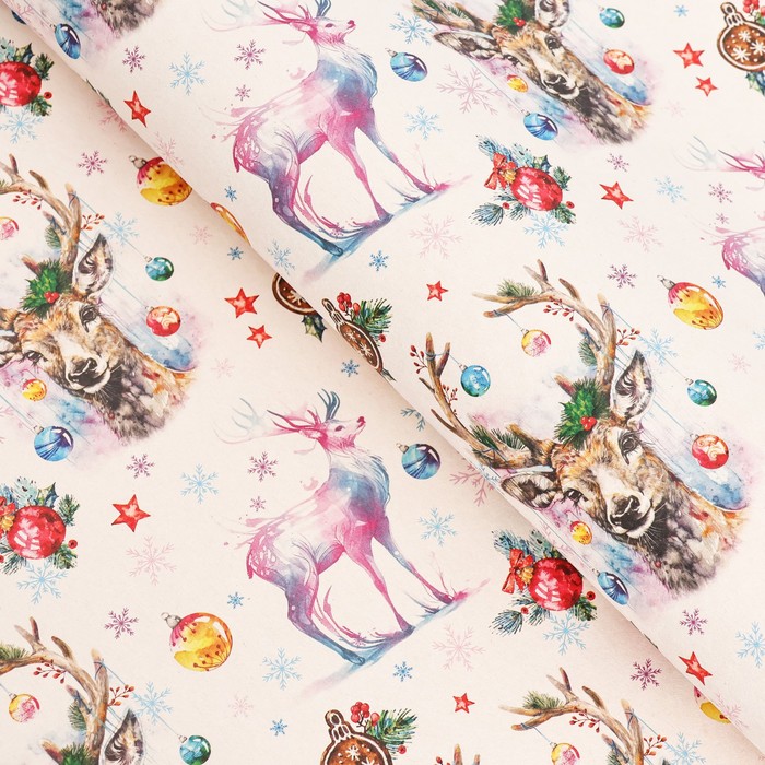 Бумага упаковочная крафт белый «Олени», 70×100 см,1 лист — Характеристики