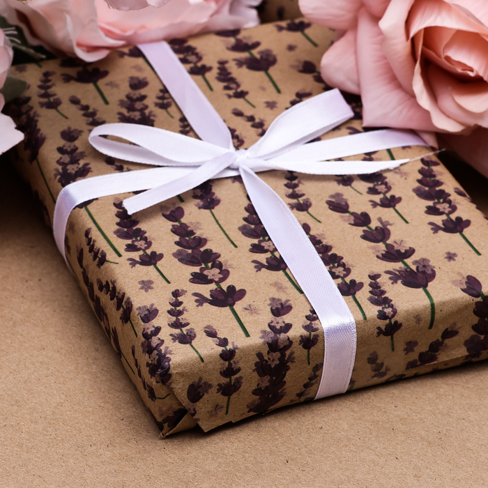 Бумага упаковочная, крафт бурый «Фиолетовые цветы», 50×70 см — Характеристики