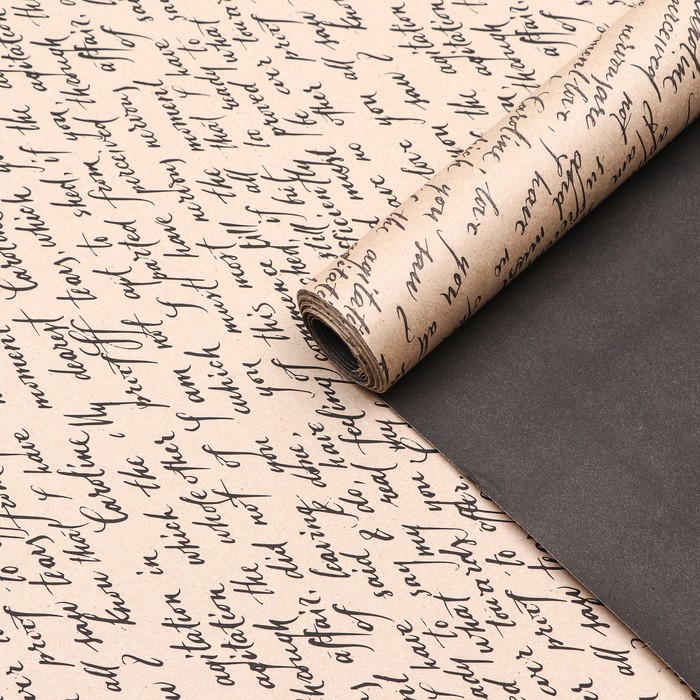Бумага упаковочная крафт, чёрная - рукопись, 0.67×10 м