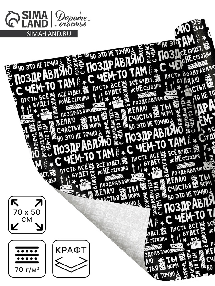 Бумага упаковочная крафт, чёрный-капучино, 0.68×10 ±5% м — Характеристики