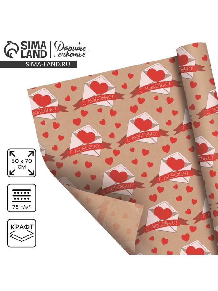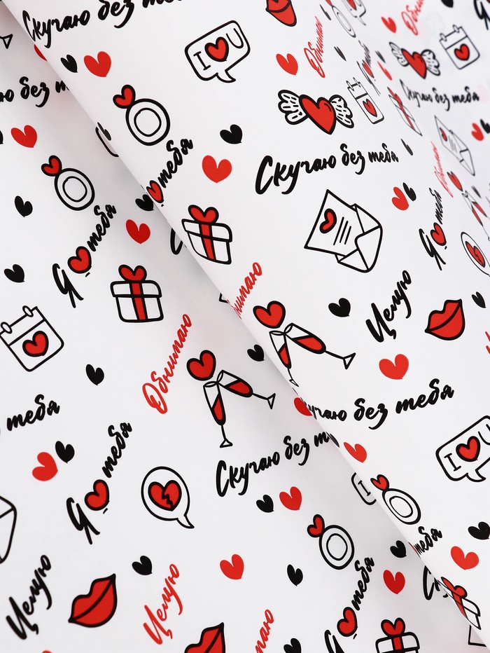 Бумага упаковочная крафт «Я люблю тебя» черный/красный на белом фоне, 0.68×10±5% м, 60 г — Характеристики