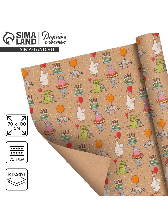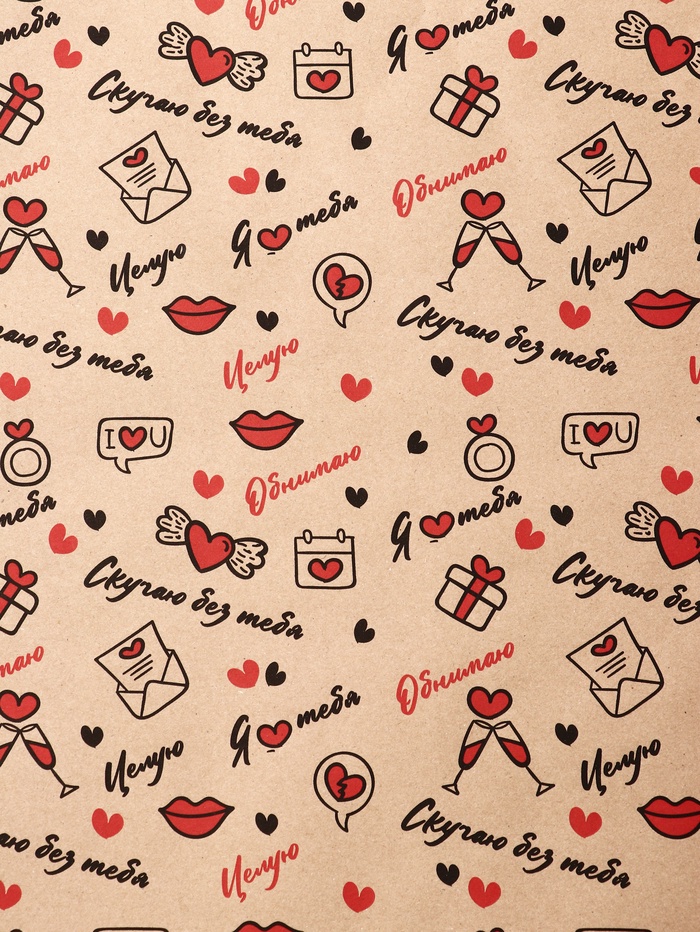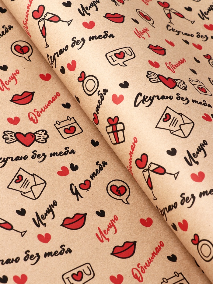 Бумага упаковочная крафт «Я люблю тебя» черный/красный на коричневом фоне, 0.68×10±5% м, 60 г — Характеристики