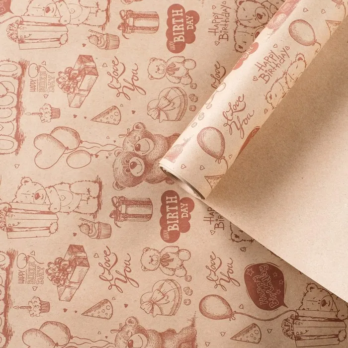 Бумага упаковочная крафт "Мишки", 0,72 х 10 м, 70 г/м² — Характеристики