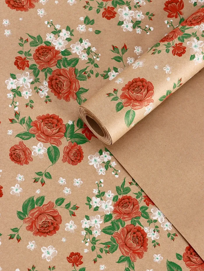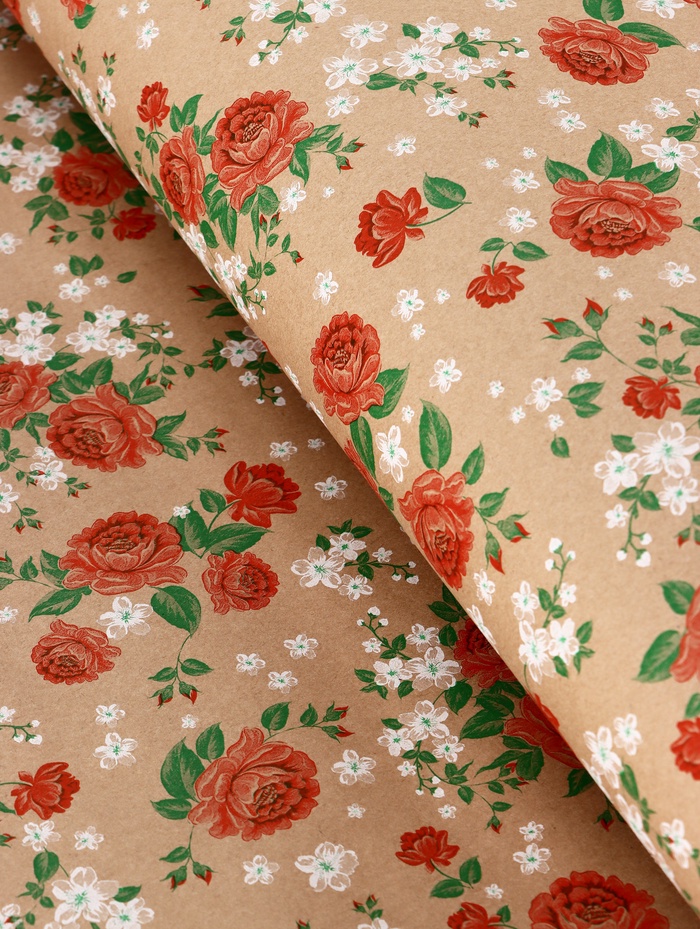 Бумага упаковочная крафт «Пионы», красный, 0.72×10±5% м, 60 г — Характеристики