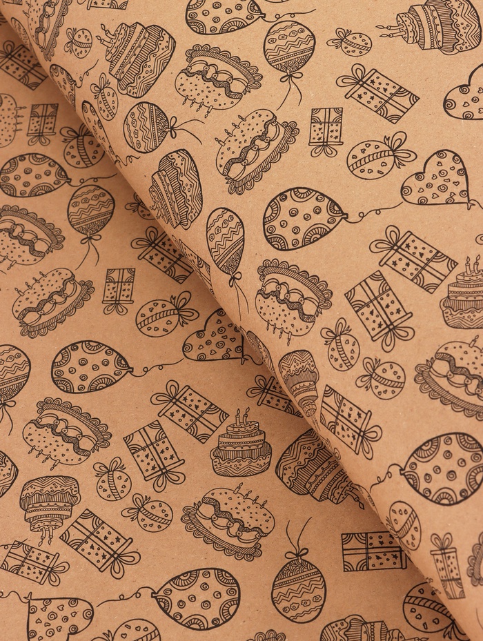 Бумага упаковочная крафт «Праздник» черный на коричневом фоне, 0.7×10±5% м, 60 г — Характеристики