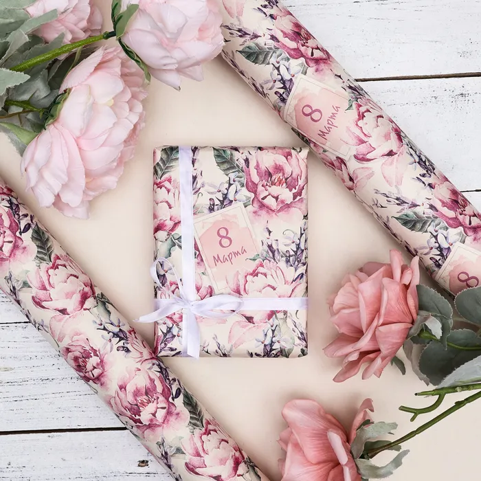 Бумага упаковочная, крафт «С 8 Марта! », 60×90 см — Характеристики