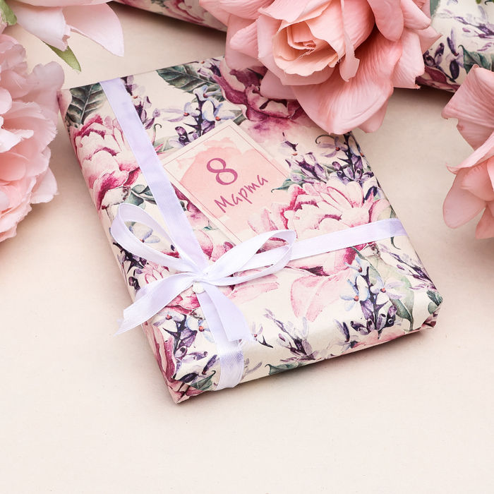 Бумага упаковочная, крафт «С 8 Марта! », 60×90 см