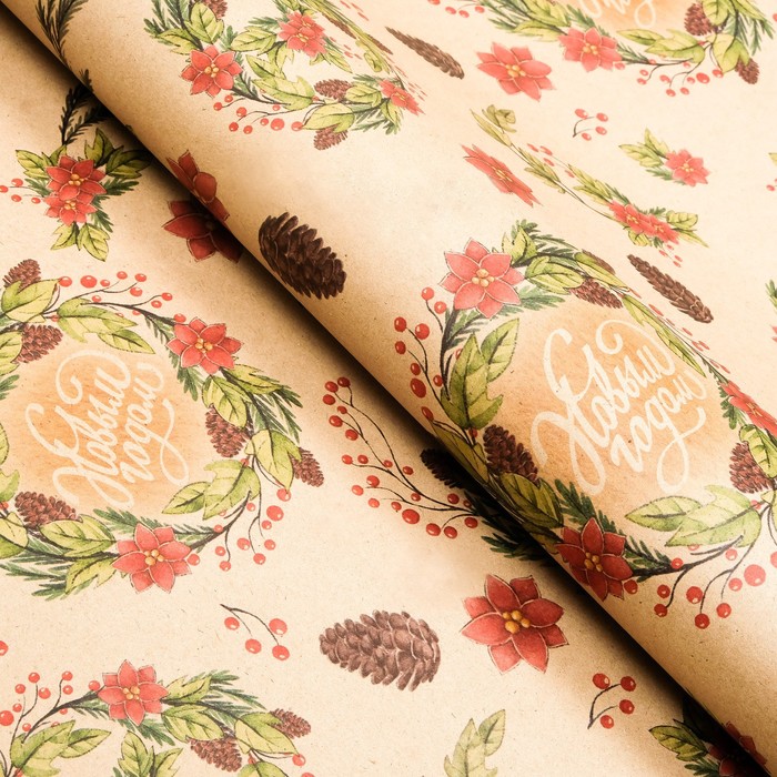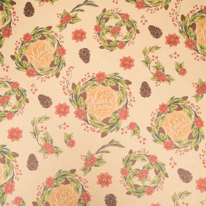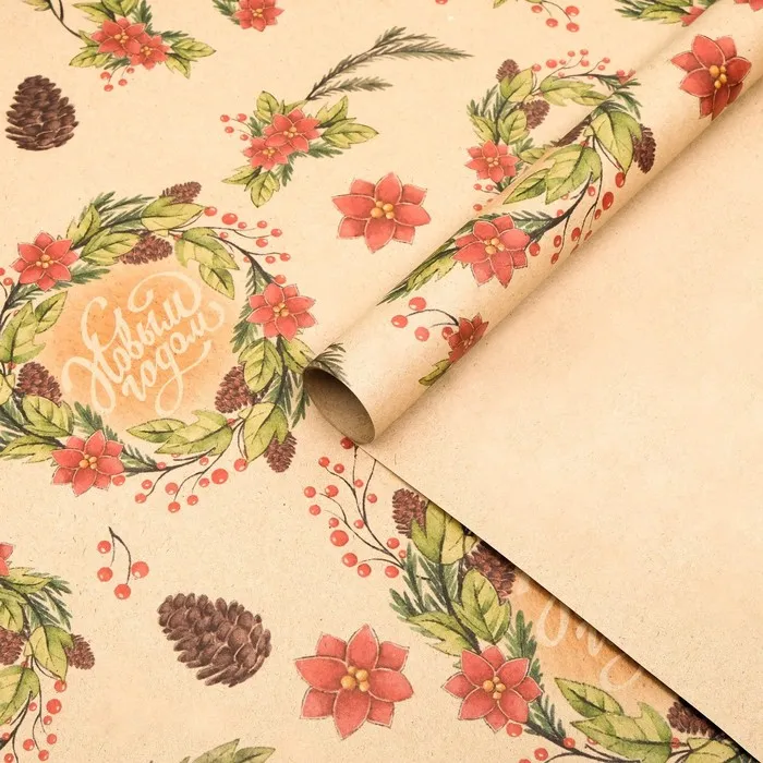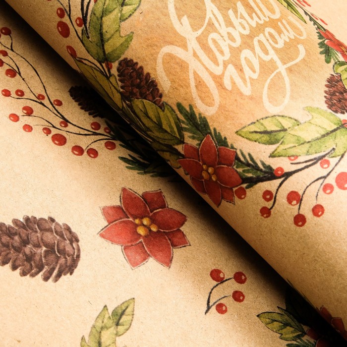 Бумага упаковочная крафт «С новым годом!»,1 лист, 70×100 см — Характеристики