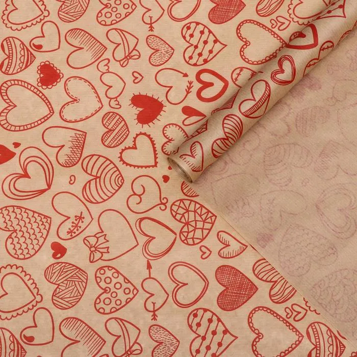 Бумага упаковочная крафт "Сердечки фигурные", красный, 40 г/м² ,0,72 х 10 м — Характеристики