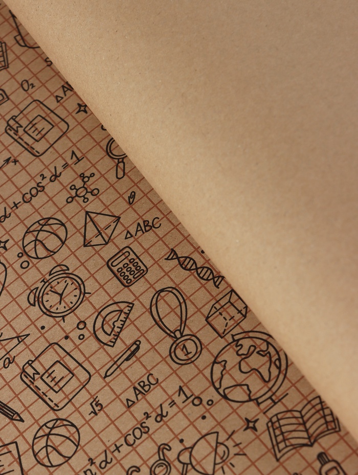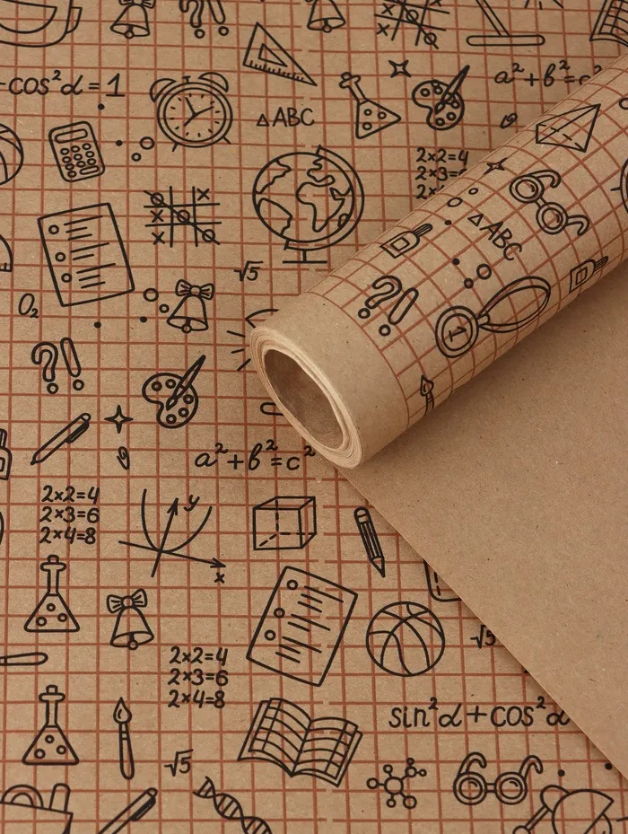 Бумага упаковочная крафт «Школьная пора», коричневый/черный на коричневом фоне 0.7×10±5%м — Характеристики