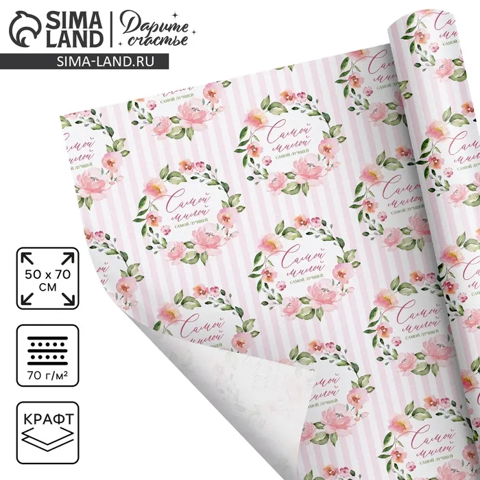 Бумага упаковочная крафт цветная односторонняя «Самой лучшей», 50 х 70 см — Характеристики