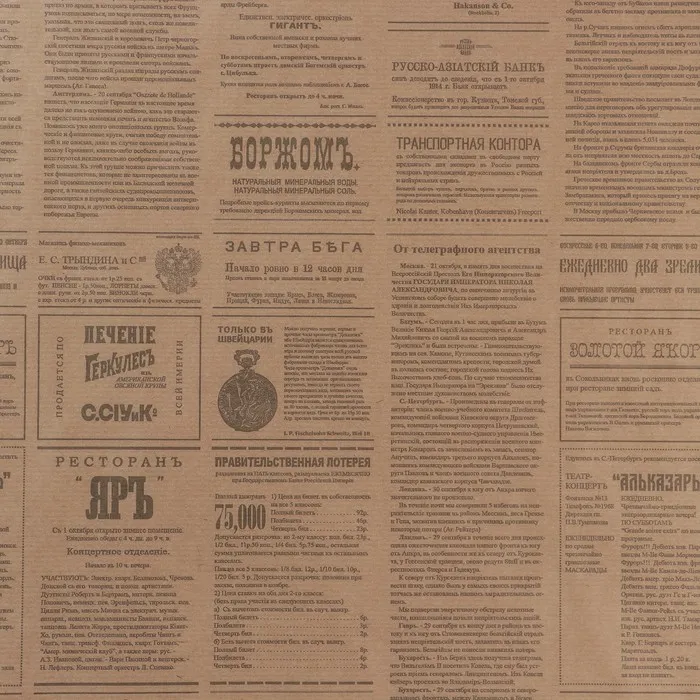 Бумага упаковочная крафт "Винтажная газета", серая, 0,72 х 10 м, 40 гр/м2