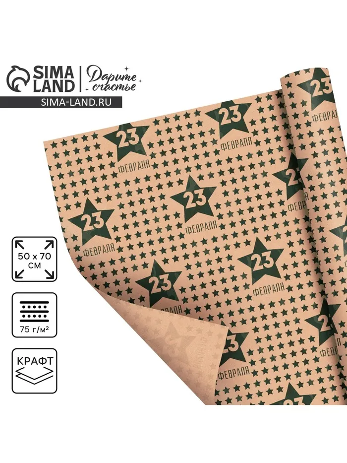 Бумага упаковочная крафтовая «23 февраля», 50×70 см — Характеристики