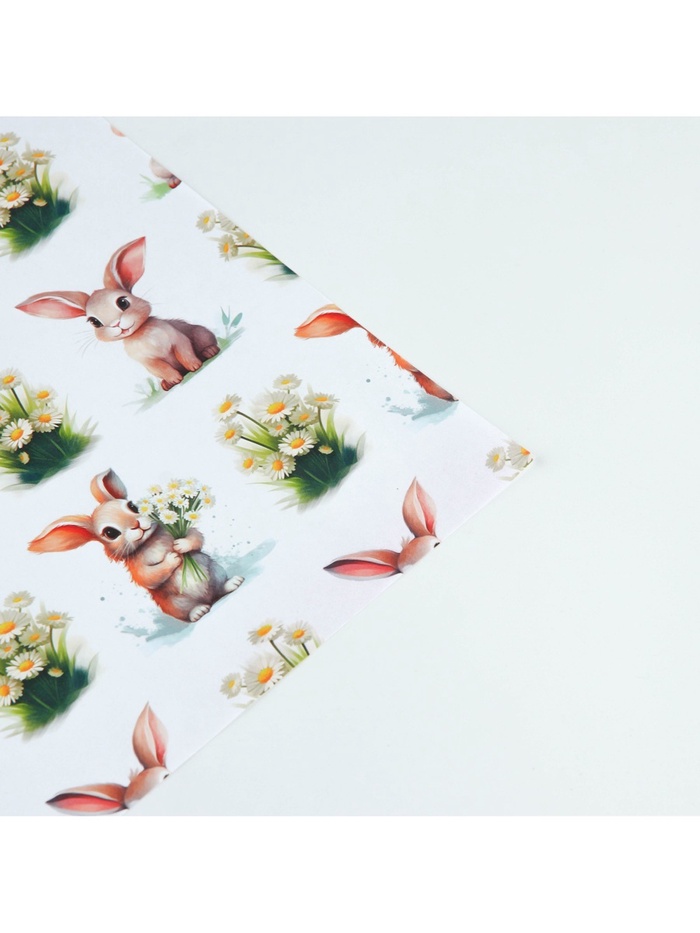 Бумага упаковочная крафтовая белая «Кролик с ромашками», 50 x 70 см — Характеристики