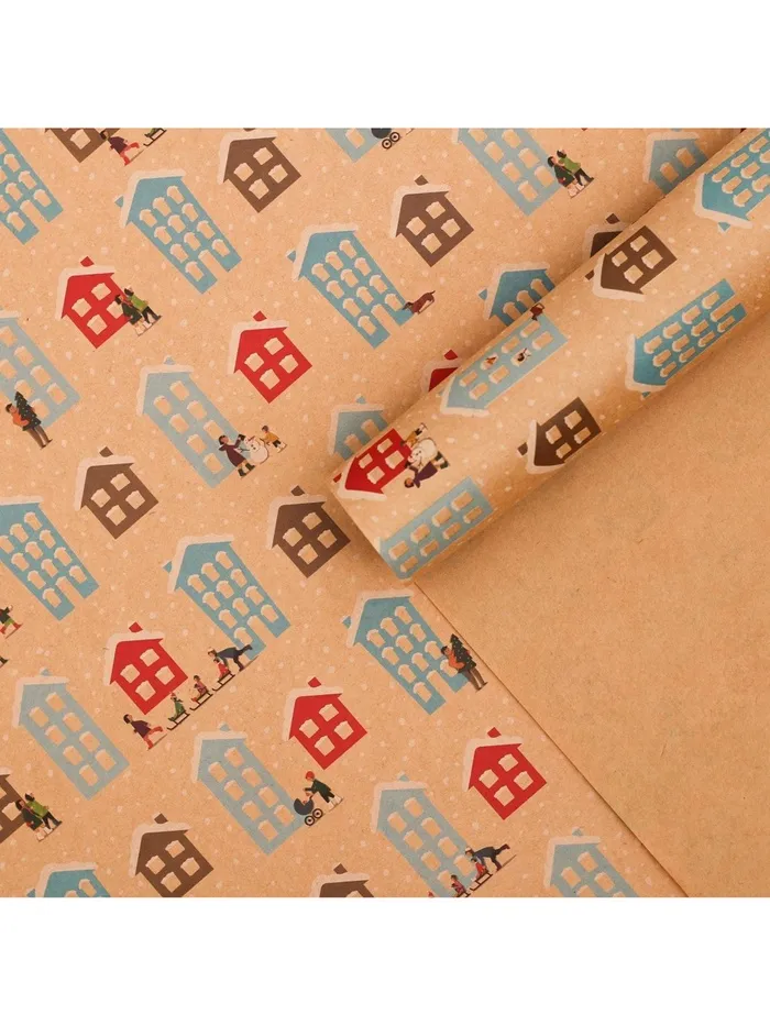 Бумага упаковочная крафтовая «Домики», 50×70 см — Характеристики