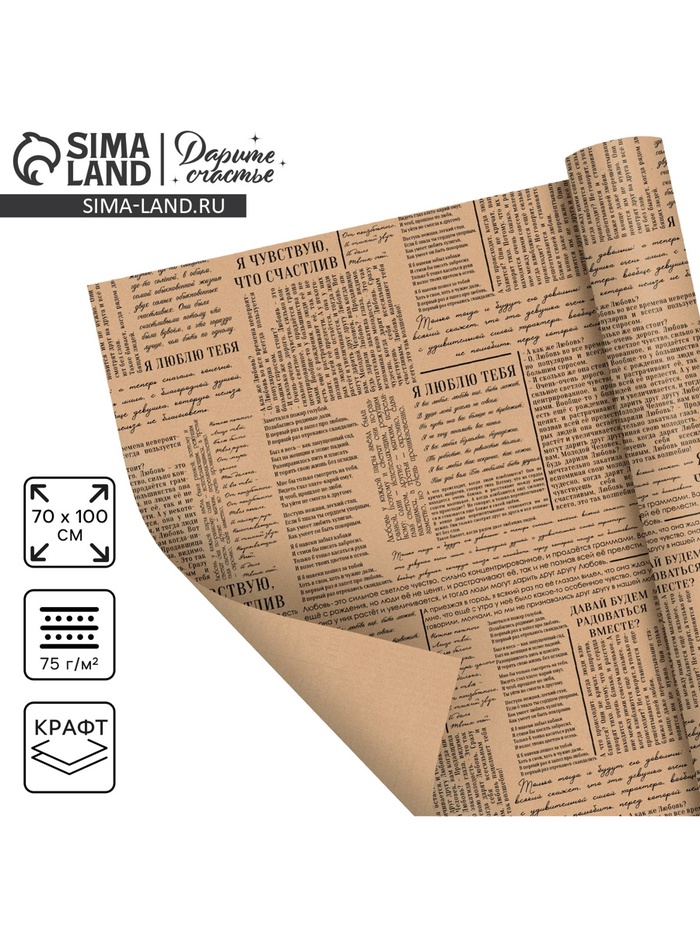 Бумага упаковочная крафтовая «Газета», 70 х 100 см — Характеристики