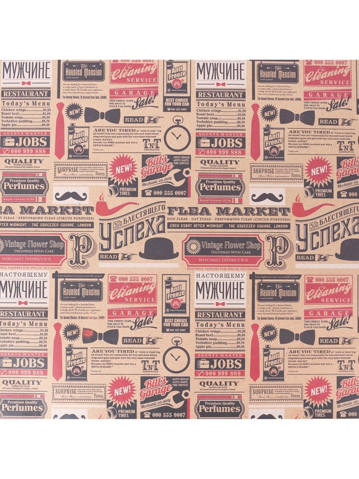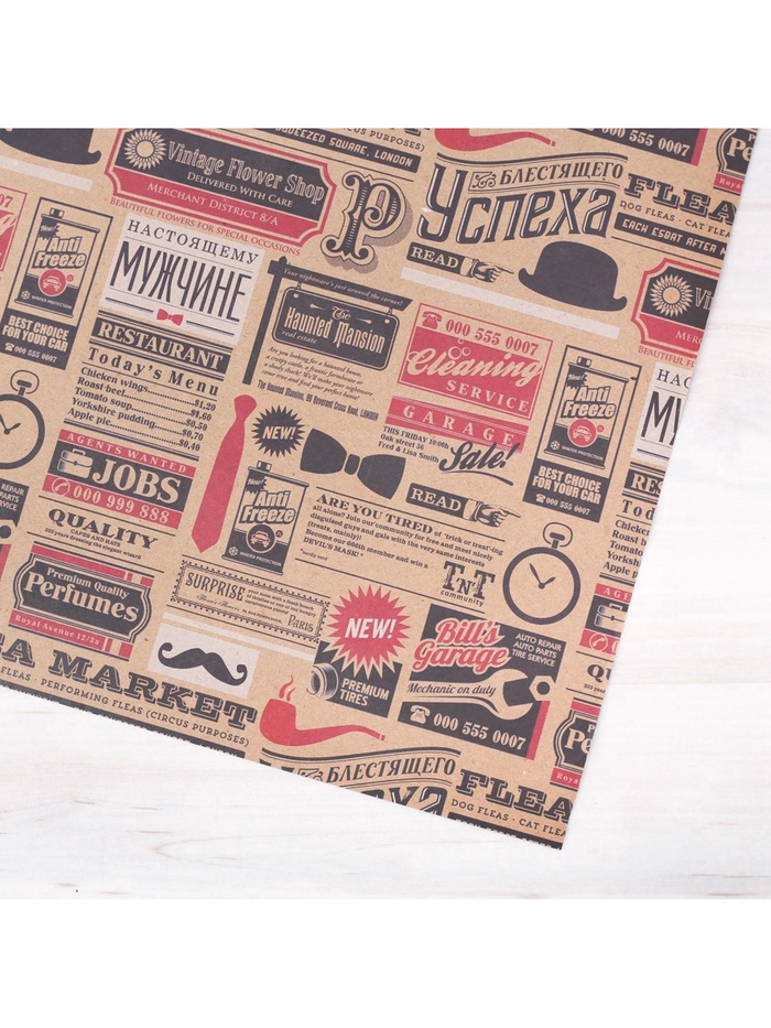 Бумага упаковочная крафтовая «Газетные вырезки», 50 х 70 см — Характеристики