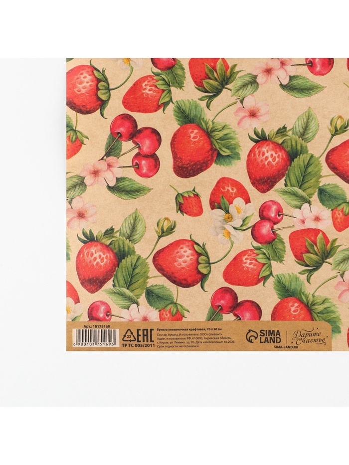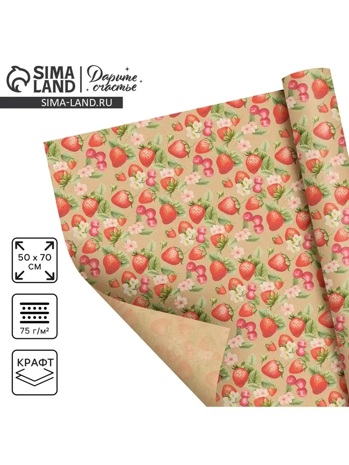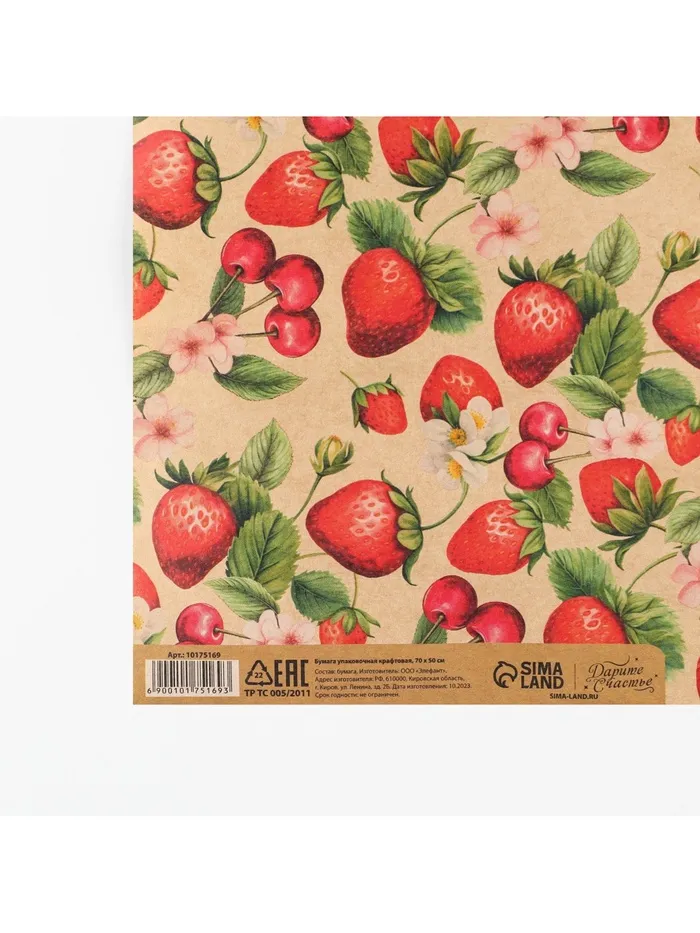 Бумага упаковочная крафтовая «Ягодки», 50 х 70 см — Характеристики