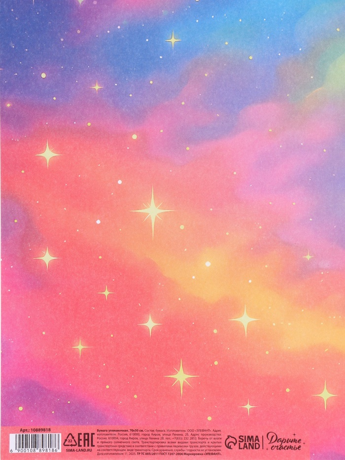 Бумага упаковочная крафтовая «Космос», 50×70 см — Характеристики