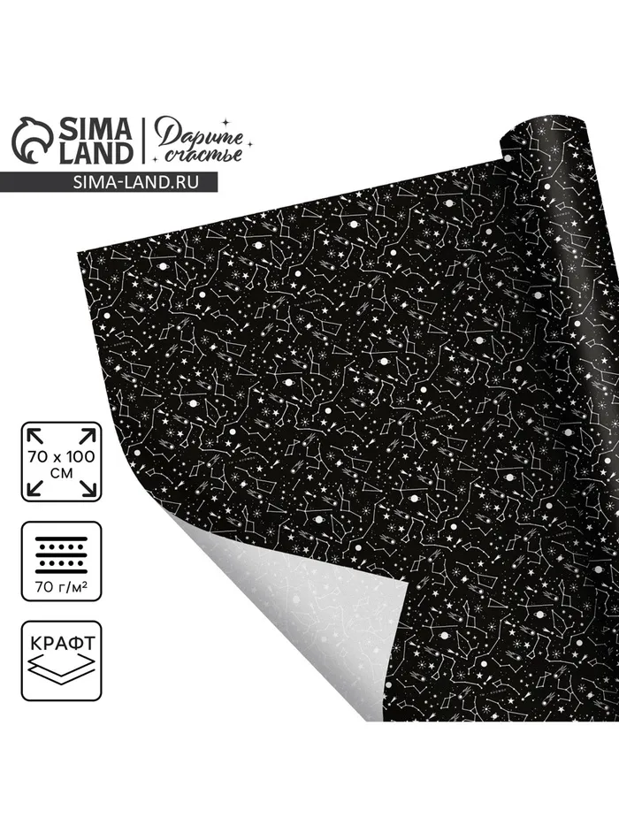 Бумага упаковочная крафтовая «Космос», 70 х 100 см — Характеристики