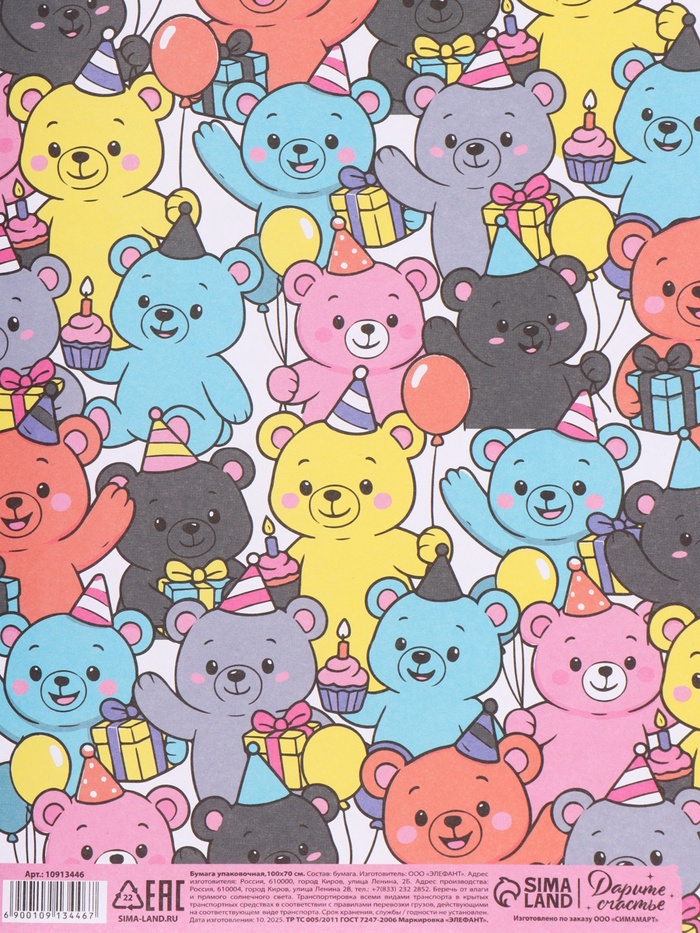 Бумага упаковочная крафтовая «Мишки», 1 лист, 70×100 см — Характеристики