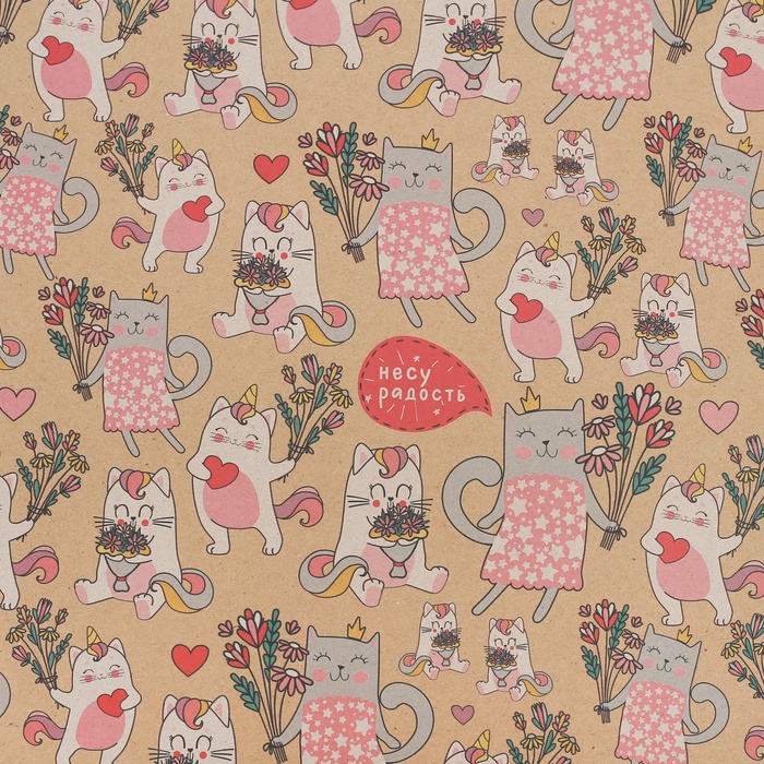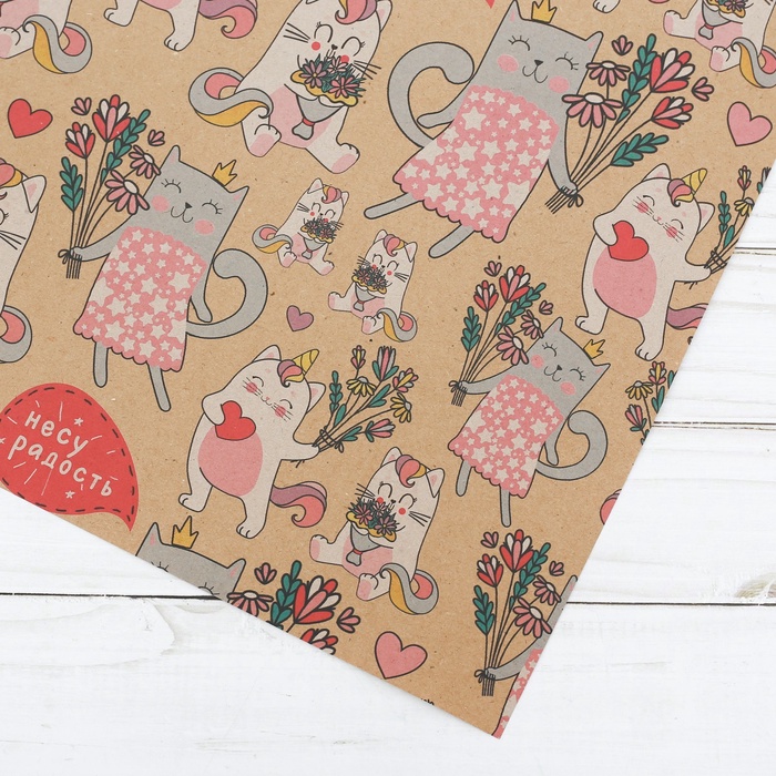 Бумага упаковочная крафтовая «Несу радость», 50 х 70 см — Характеристики