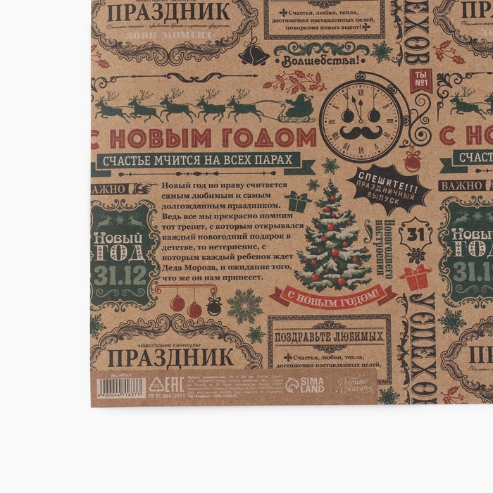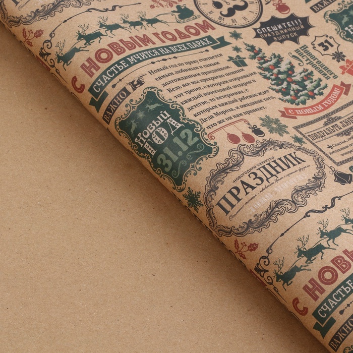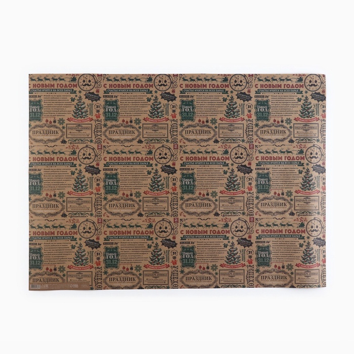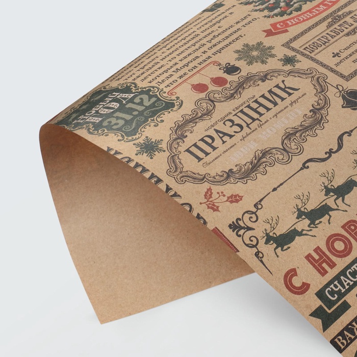 Бумага упаковочная крафтовая «Новогодняя газета», 50 х 70 см — Характеристики