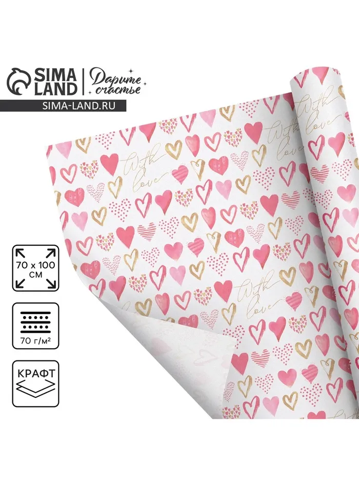 Бумага упаковочная крафтовая «С Любовью», 70 х 100 см — Характеристики