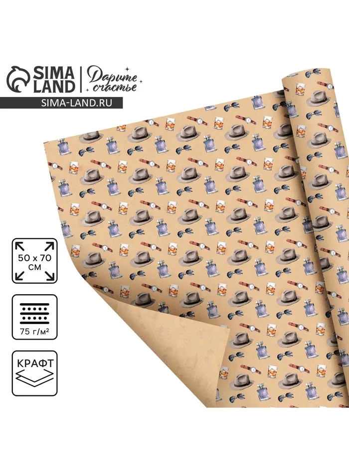 Бумага упаковочная крафтовая «Шляпы», 50 х 70 см — Характеристики