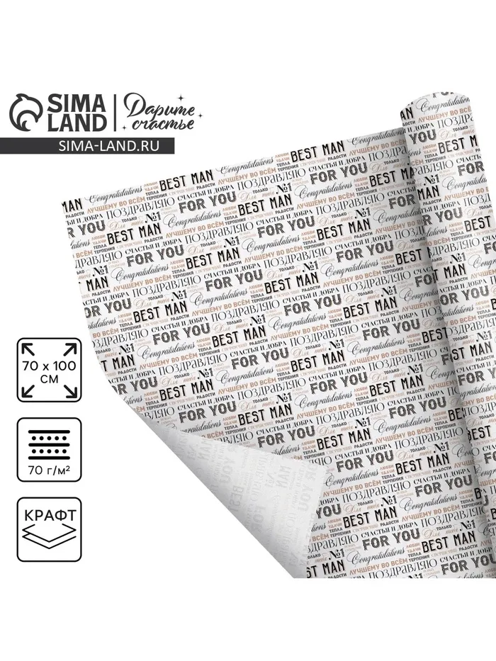Бумага упаковочная крафтовая «Шрифт», 70 х 100 см — Характеристики
