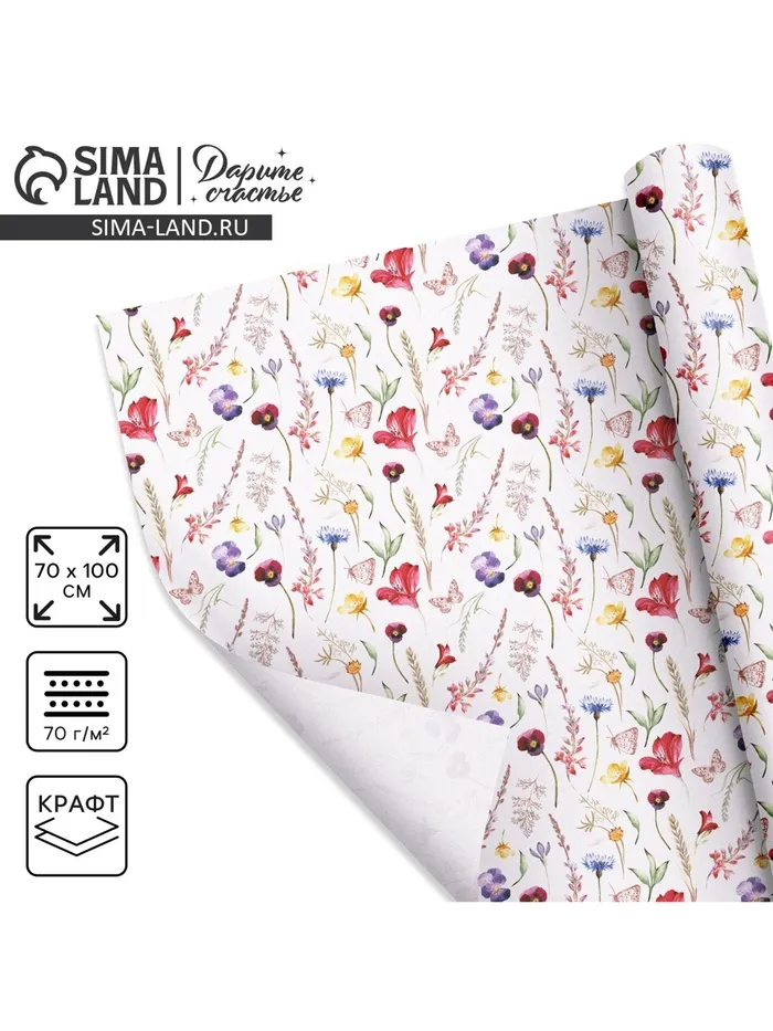 Бумага упаковочная крафтовая «Цветы», 70 х 100 см — Характеристики