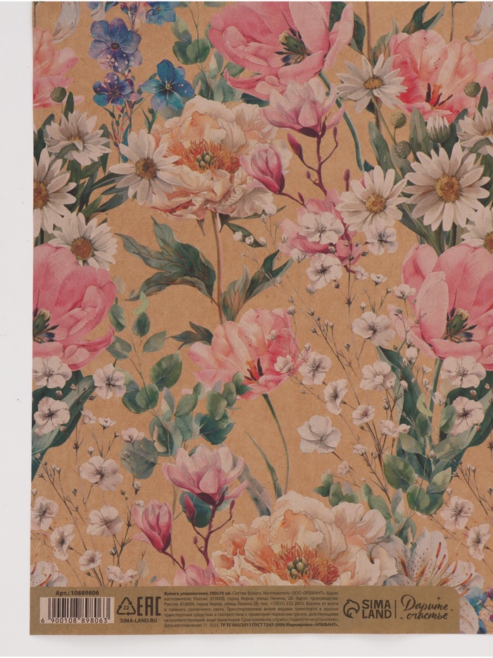Бумага упаковочная крафтовая «Цветы», 70 × 100 см — Характеристики