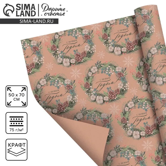 Бумага упаковочная крафтовая «Венки», 50 х 70 см — Характеристики
