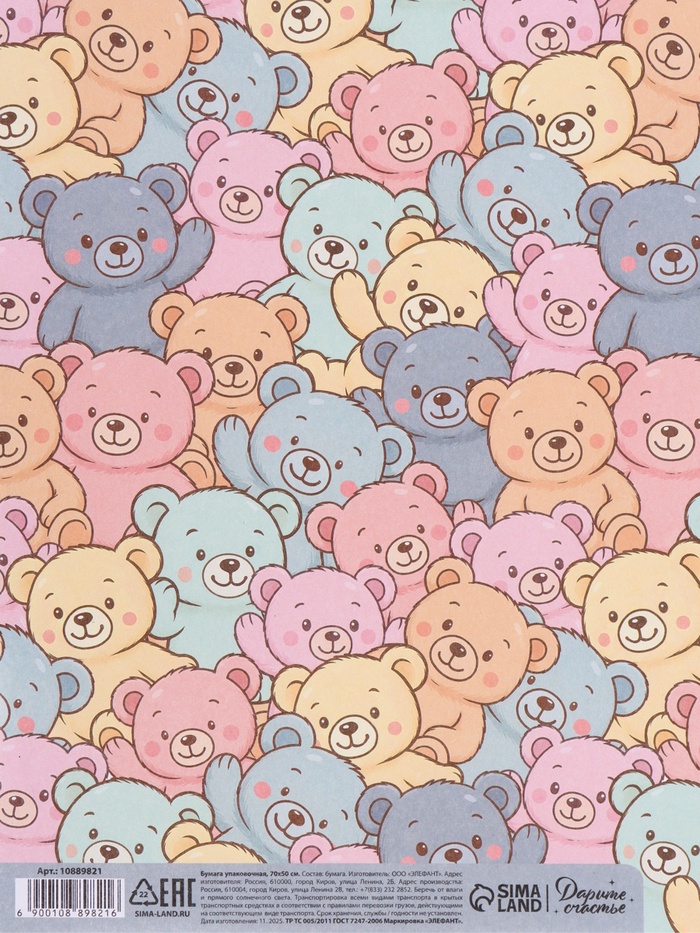 Бумага упаковочная крафтовая «Весёлые медведи», 50×70 см — Характеристики