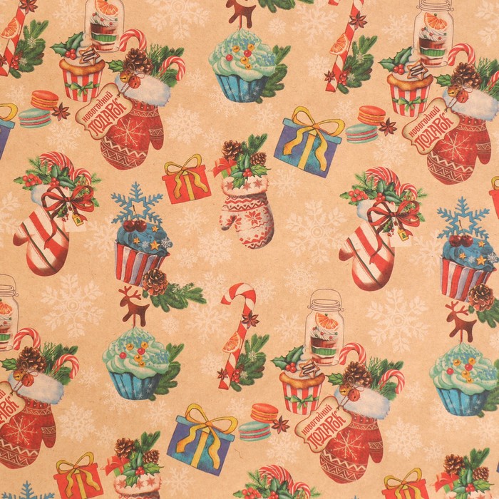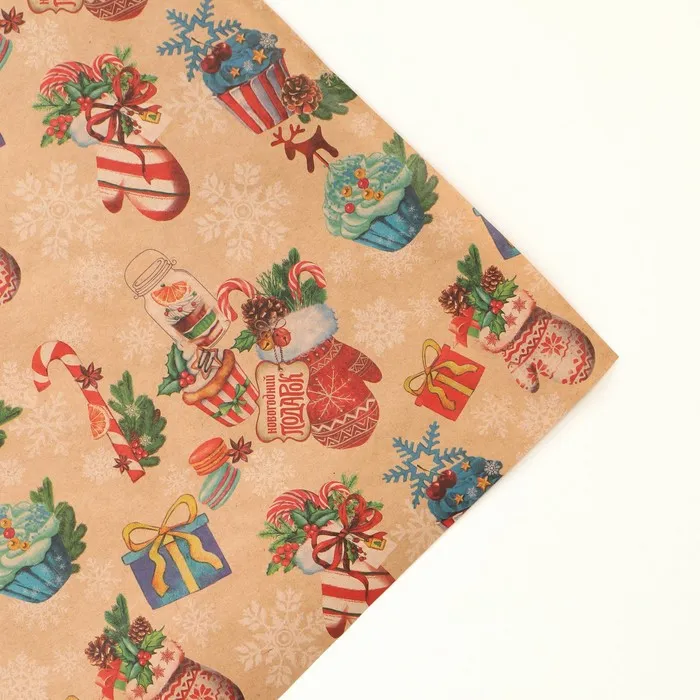 Бумага упаковочная крафтовая «Вкусный праздник», 50 х 70 см — Характеристики