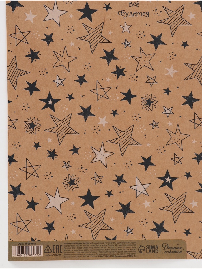 Бумага упаковочная крафтовая «Звёзды», 70 × 100 см — Характеристики