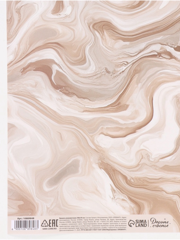 Бумага упаковочная «Мрамор», 70 × 100 см — Характеристики