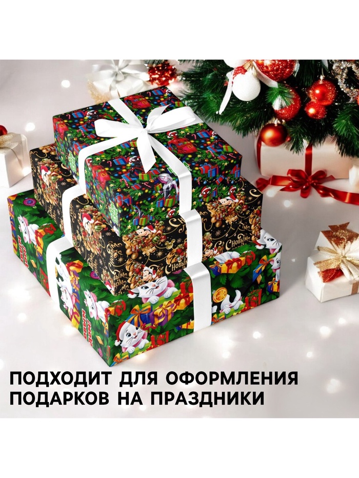 Бумага упаковочная новогодняя, 70×100 см, 3 листа, Человек-паук, Микки Маус, Коты аристократы — Характеристики