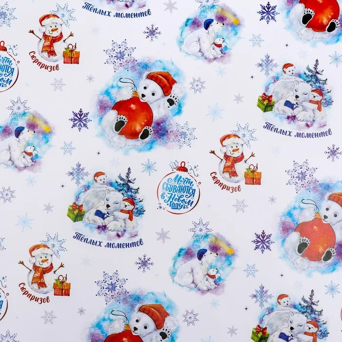 Бумага упаковочная новогодняя глянцевая "Белые медведи", 70 х 100 см. — Характеристики