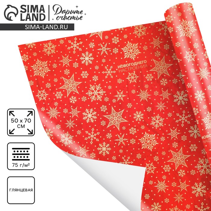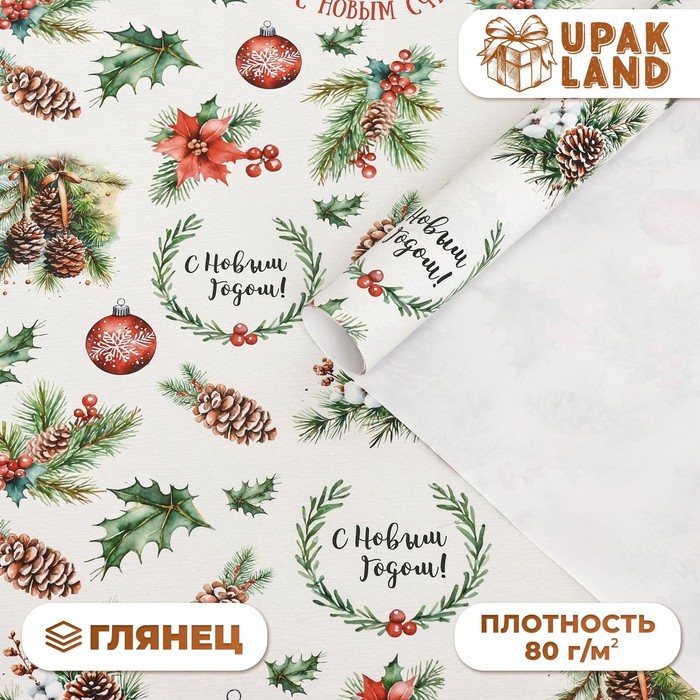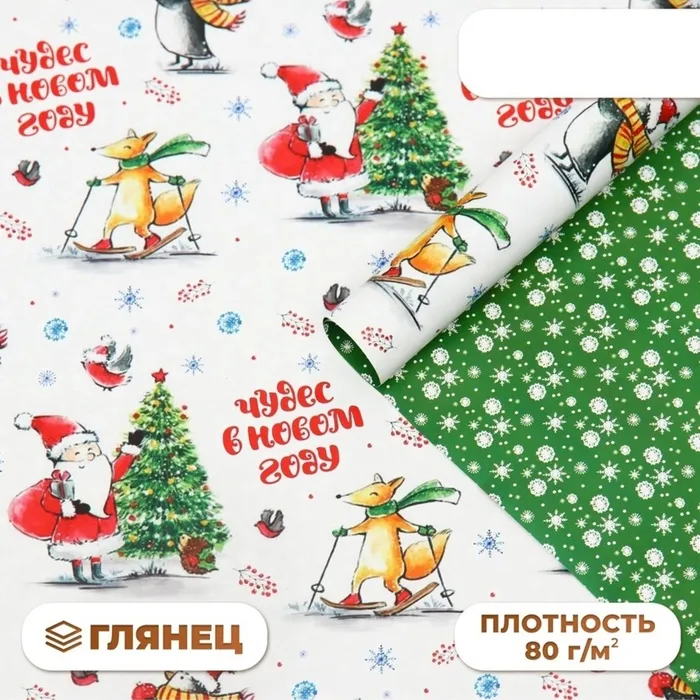 Бумага упаковочная новогодняя глянцевая двусторонняя «Чудес в новом году», 68×100 см — Характеристики