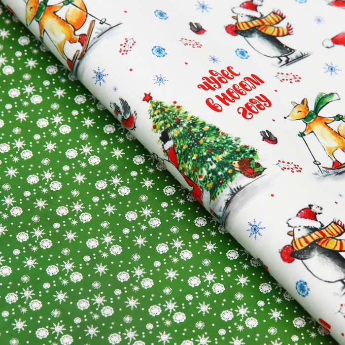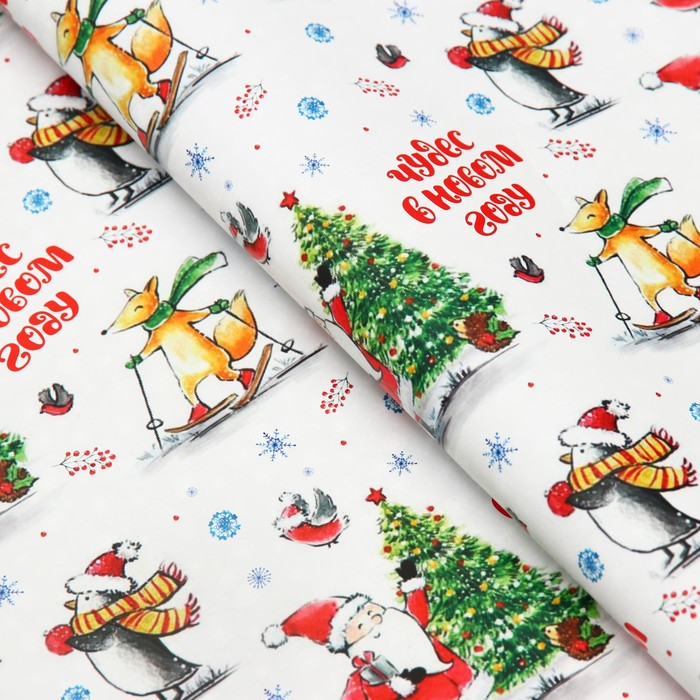 Бумага упаковочная новогодняя глянцевая двусторонняя «Чудес в новом году», 68×100 см