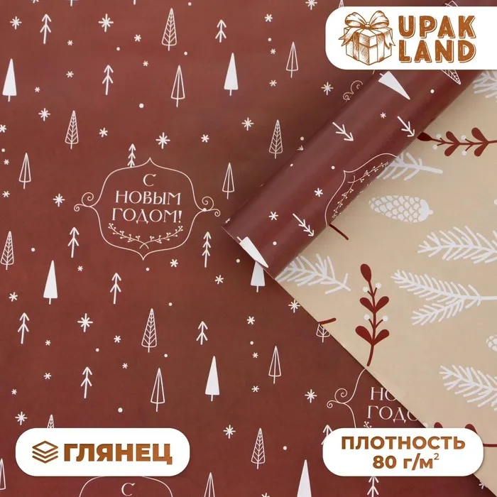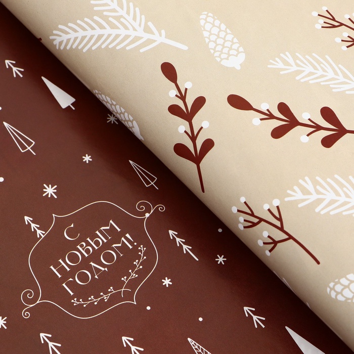 Бумага упаковочная новогодняя глянцевая двусторонняя «Изысканность», 50×70 см