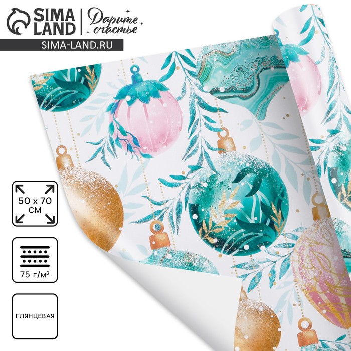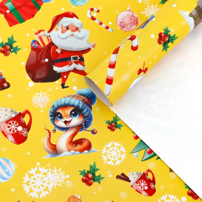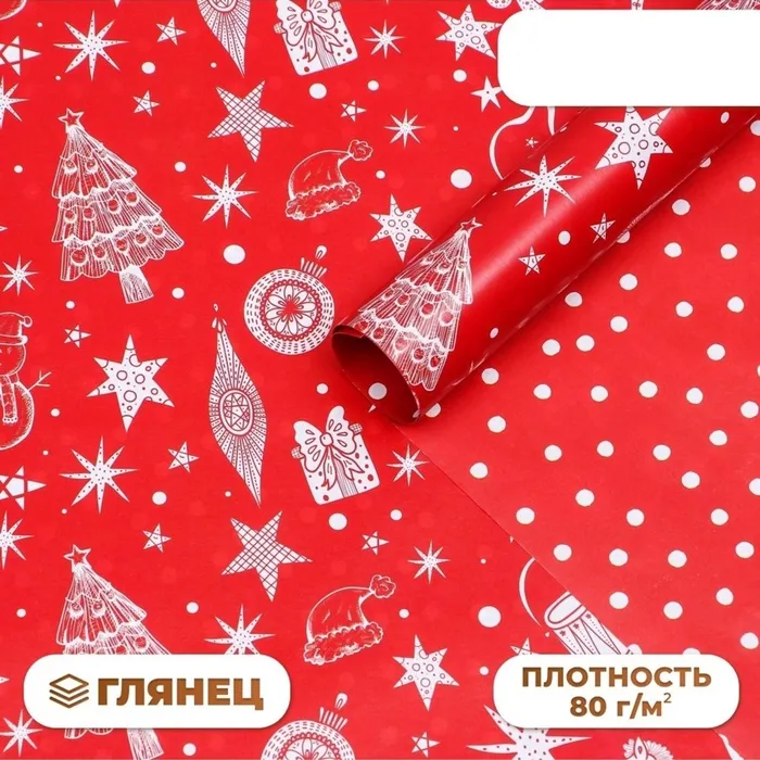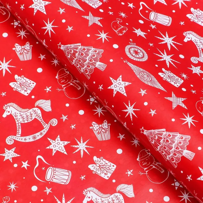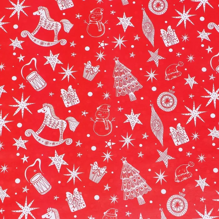 Бумага упаковочная новогодняя глянцевая двусторонняя «Новый год 2026: Лошадка и ёлочка », 70 х 100 см — Характеристики